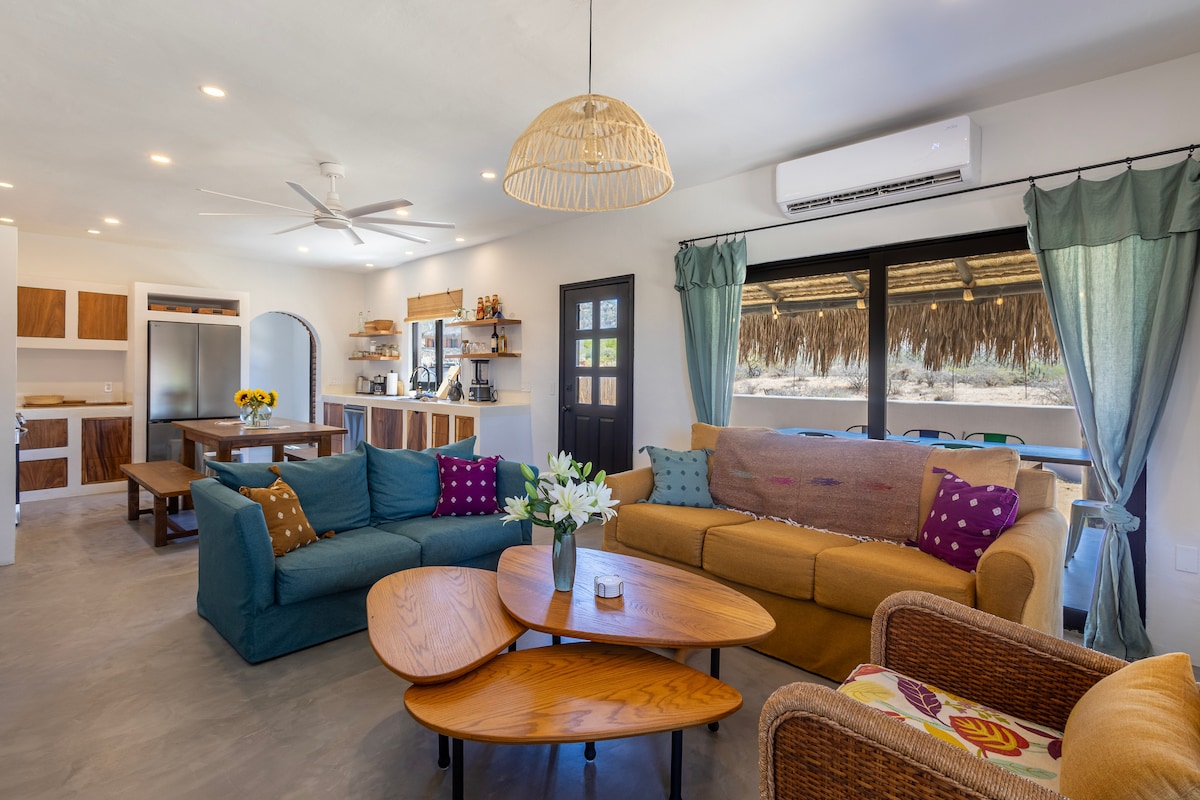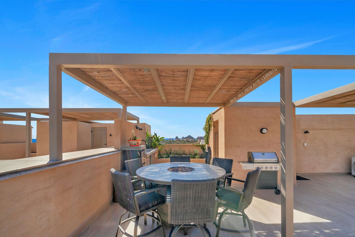 Second floor 3-bedroom condo at Las Arenas with the best terrace and direct access to pool and amenities. Inspired by Los Cabos style, surrounded by desert vegetation. Premium décor, 3 beds, 3 baths, sleeps 6. Community features pool, jacuzzi, firepit, gym, massage room, sauna and breathtaking sunsets. Only 500m from Medano Beach access through RIU Hotel and close to downtown. Perfect mix of luxury, comfort, and vibrant vibes.
