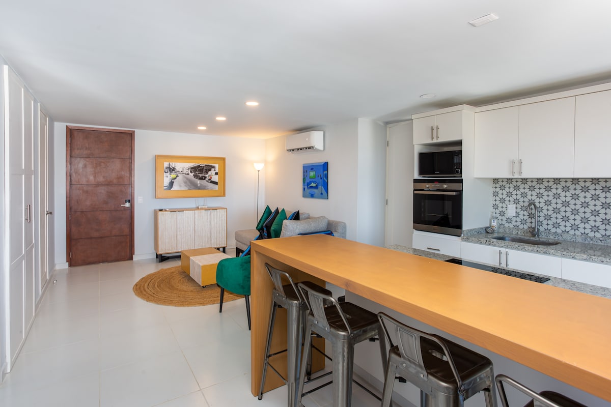 WALK EVERYWHERE Located RIGHT IN THE MARINA in the upper level of Puerto Paraiso Mall, makes it easy to walk to the market, beach, restaurants and clubs. Ideal for all types of travelers and families. This well-equipped 2 BR and 2 Bath apartment features a wonderful private rooftop terrace,lounge chairs, and dining table. My property manager Oscar can help you arrange your transportation from the airport, dinner reservations, or activities to make your stay a memorable one.