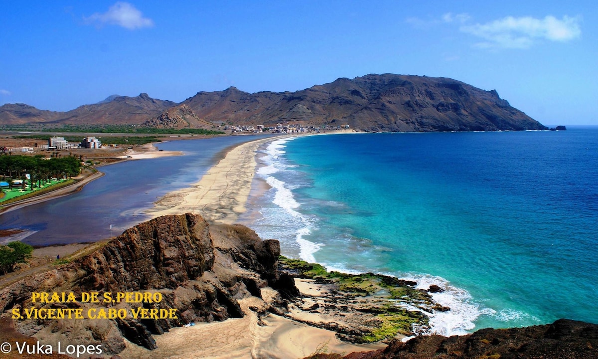 Large oceanfront corner apartment. Free Wifi. Indulge in resort like stay without the resort price. Enjoy the spectacular view of the city of Mindelo, the blue ocean waters, view ilhéu dos Passos and Porto Novo, Santo Antao, amazing night lights and more, all from the comfort of the living room sofa.