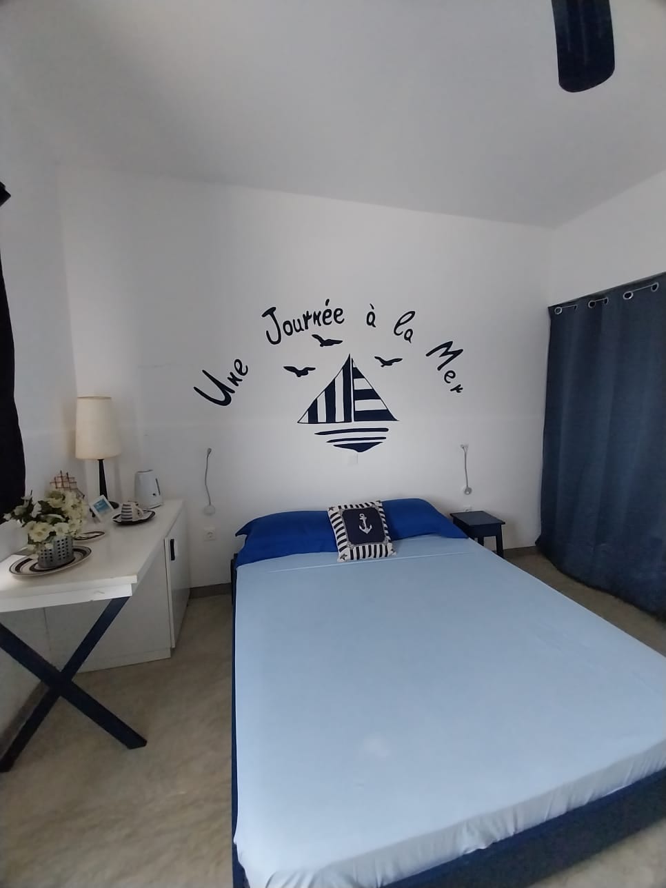 Three people bedroom. One double bed and one single bed with private bathroom in "La Vela" in the center of Palmeira Town. Navy contest, quiet area, particularly indicated to who needs to travel to a different island, by plane or boat or wants to know the real life of Cape Verde in Sal Island.