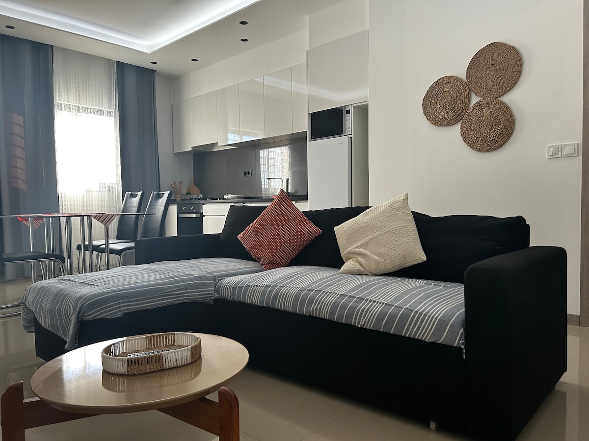 Descubre tu refugio en Achada Sao Filipe!. Apartamento T1 acogedor. Cuarto con cama doble y aire acondicionado, sala y cocina open space con TV, estufa, horno, nevera, cafetera y mucho mas. Baño con agua caliente y equipada para su comodidad. Ideal para vacaciones! Perfecta para parejas o familias com niños. Relájese en la ciudad de Praia.