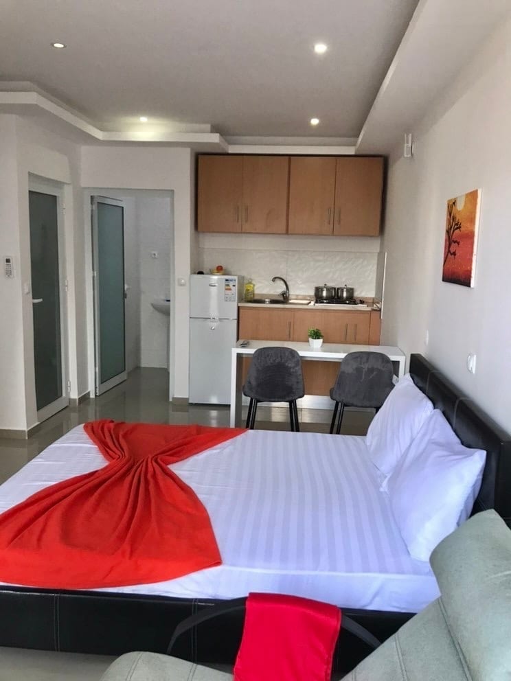 Right in the heart of downtown Mindelo, this brand new, modern and trendy studio apartment (40m2) is located parallel to the main street, you can retreat to a fully equipped apartment to relax. Just outside the front door you have access to everything Mindelo has to offer. You can find everything you need only a few minutes away; the local bakery is a block away, and a supermarket even closer. Only ten minutes’ walk to the beautiful beach Laginha and beautiful parks to relax even closer.