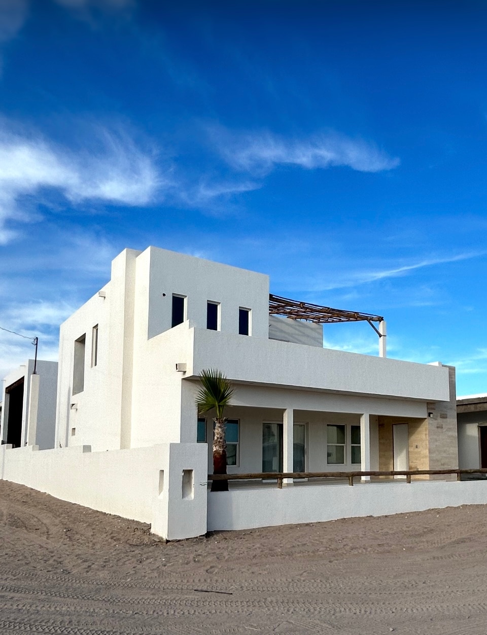 Gorgeous 5 Bed / 6 Bath beachfront home with stunning views of the private and pristine sandy beach and tranquil Sea of Cortez! There are several terraces to enjoy yoga, star gazing, BBQ, outdoor dining and a toasty fire at night. This home is very comfortable for a large group or a couple families to stay in.