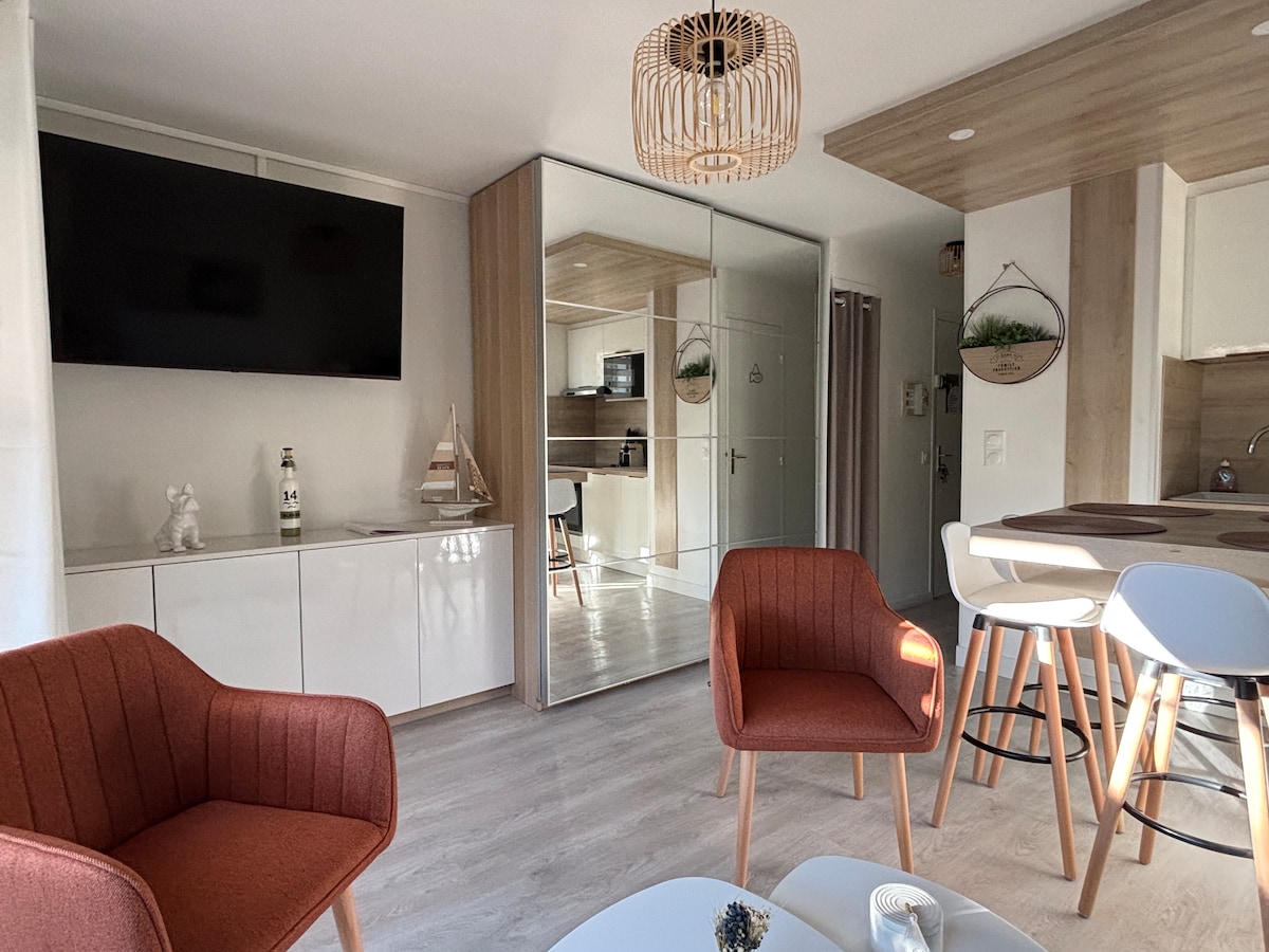 Très bel appartement calme et entièrement refait à neuf avec balcon aménagé situé côté cours. Le logement peut accueillir 4 personnes. L’appartement est bien aménagé et agréable. Totalement équipé, sécurisé et impatient de vous accueillir pour votre prochaine escapade en famille. Il est muni d’une place de parking privative situé en parking couvert et sécurisé par badge ainsi que des emplacements de stationnement libre et gratuit à proximité. Taille canapé convertible (146x200)