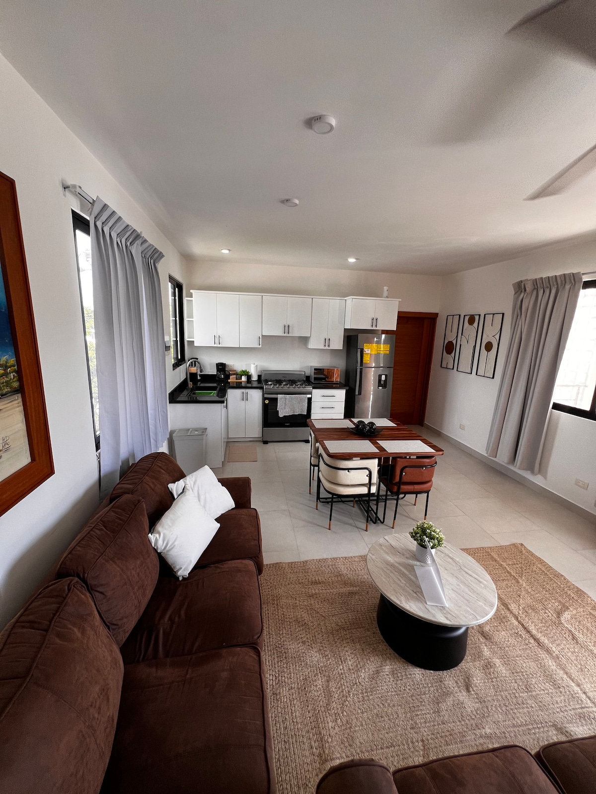Hermoso y confortable apartamento, completamente equipado para sus vacaciones. Con decoración moderna y costera. Ubicado justo al frente de PLAYA DE MINO, a poquitos pasos de la LAGUNA GRI GRI y cerca de las DEMÁS PLAYAS y RESTAURANTES de la zona. Con 2 habitaciones, cada una con su baño completo privado, aires acondicionados, abanicos de techo, camas Queen, agua caliente y fría. Aire también en la sala, wifi, Smart TV, cocina full, con todas las amenidades necesarias para tu cómoda estancia.