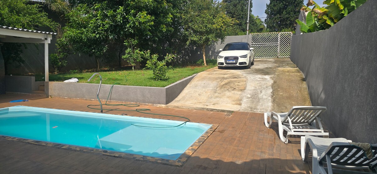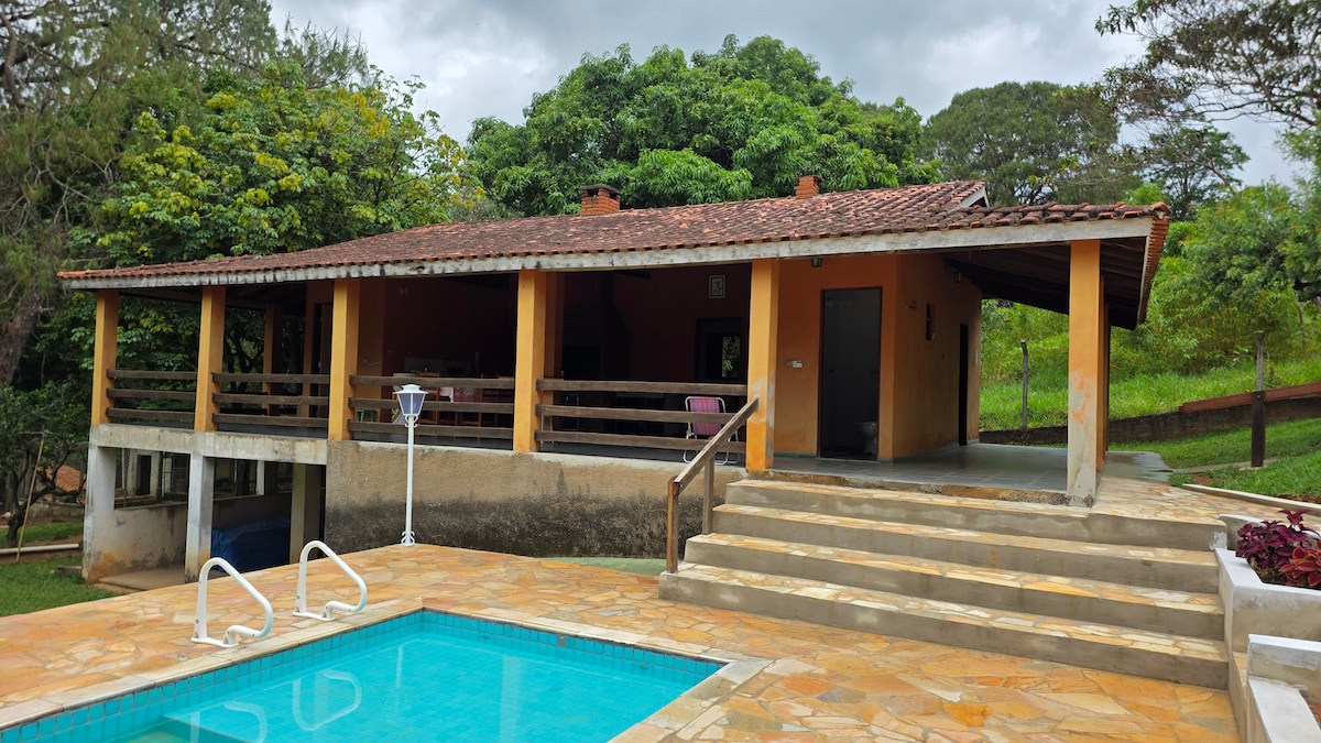 Desfrute de ótimos momentos em nossa casa de campo, um refúgio espaçoso e tranquilo. Situada em um terreno amplo e arborizado, você terá total privacidade, longe de vizinhos. Com uma espaçosa churrasqueira e uma piscina convidativa, a residência é perfeita para confraternizações e datas comemorativas, oferecendo um estacionamento privativo amplo. Logo, em dias ensolarados, é ideal saborear um delicioso churrasco e relaxar ao sol, enquanto se divertem na piscina.