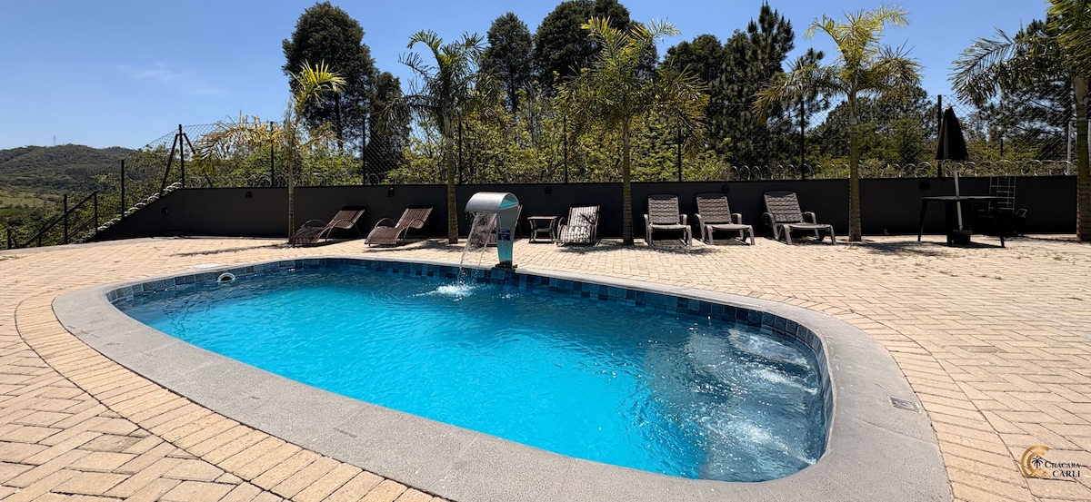 Desfrute de ótimos momentos em nossa casa de campo, um refúgio espaçoso e tranquilo. Situada em um terreno amplo e arborizado, você terá total privacidade, longe de vizinhos. Com uma espaçosa churrasqueira e uma piscina convidativa, a residência é perfeita para confraternizações e datas comemorativas, oferecendo um estacionamento privativo amplo. Logo, em dias ensolarados, é ideal saborear um delicioso churrasco e relaxar ao sol, enquanto se divertem na piscina.