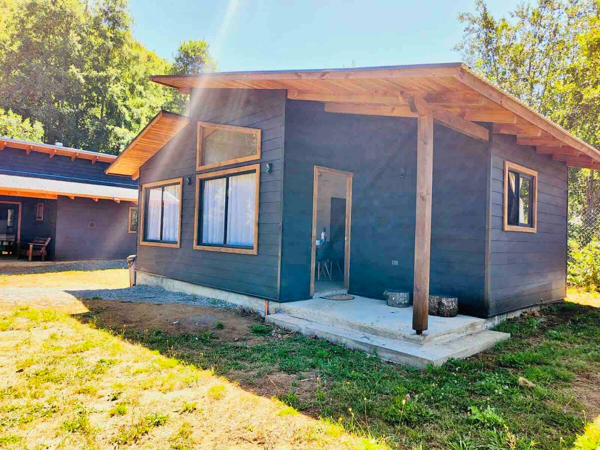 Cabaña para dos personas en entorno tranquilo para descansar a cuatro kilómetros del lago caburgua y 15 minutos de Pucón. Cerca de termas, parques nacionales y demás actividades del sector.