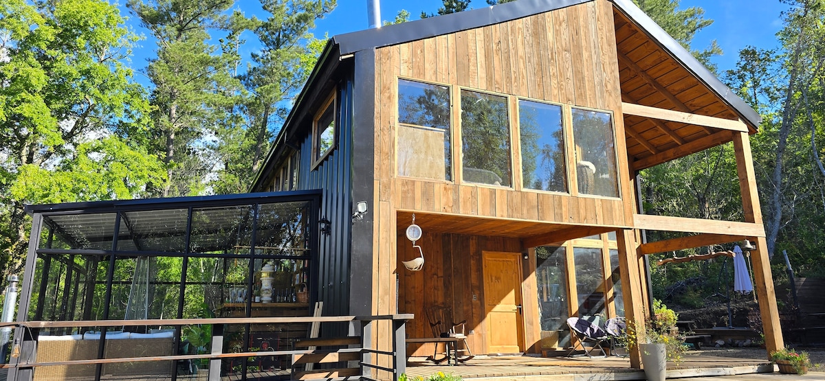 Cabaña de lujo tipo loft con finas terminaciones, inserta en un bosque centenario de arboles nativos. Baño en suite, walking closet, cocina integrada completamente equipada. Combustión a leña, estufa toyotomi. Gran terraza, parrilla, mesa en el bosque para asados, piscina, estacionamiento privado, smart tv, netflix, tv cable y wifi fibra optica.