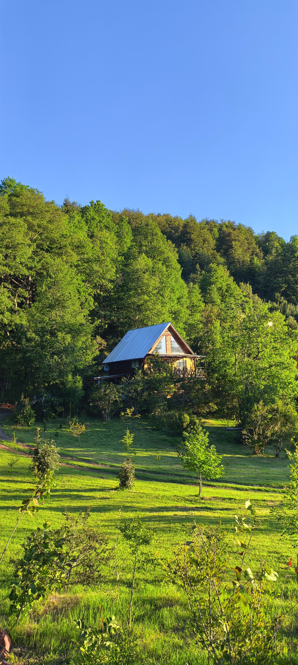The cabin has a natural feel and rustic touch within amazing surroundings of the native forest and trees all around you. The cabin has been built with native and sustainable wood. it is well equipped. Is very cute and cozy space with a large veranda with an outdoor seating. There is a nice river with access within the property with a picnic table next to it to enjoy listening the river. Big sunny green garden, picnic table to enjoy the view of the mountains, a fire-pit and couple of hammocks.