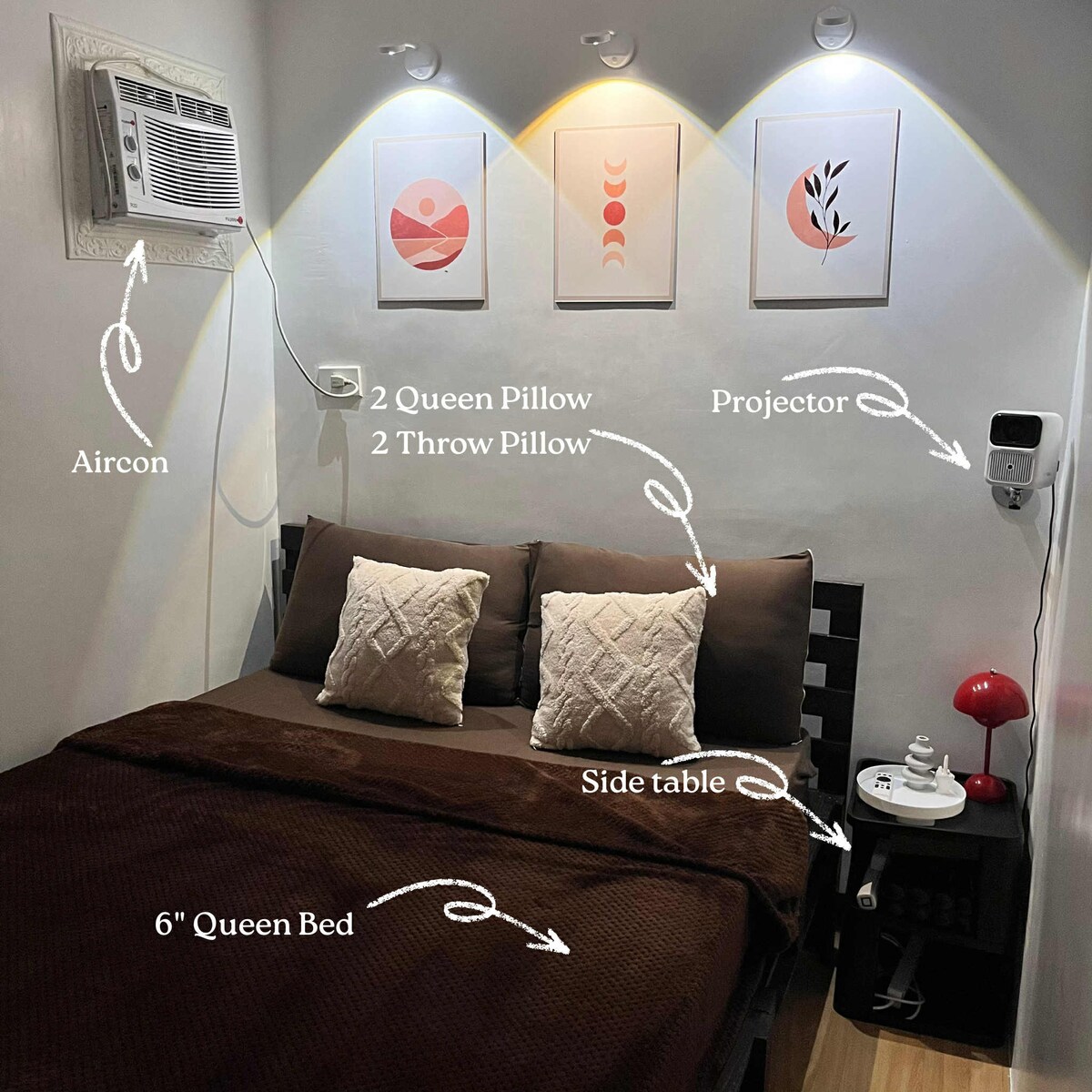 Welcome to our unique and cozy, fully furnished condominium! This condo is located just 5-6 minutes from Nuvali, 20 minutes from Enchanted Kingdom, and 30 minutes from Tagaytay. It features a fully equipped kitchen, free WiFi, and a home theater that will make you feel like you’re in the front row of a movie theater. We are conveniently close to malls, theme parks, and restaurants. For your convenience, we’ve installed a smart lock on the front door, allowing for easy self-check-in.