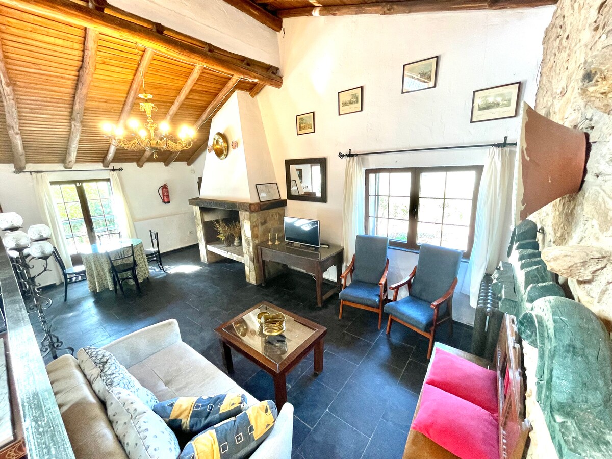 Traditional stone cottage with pool in Villanueva de la Vera. 6 guests, 3 bedrooms, 2 bathrooms. Lovely stone cottage set in a private finca of our Pure Spanish Horse stud of 16 hectares, with stunning views of the Gredos mountains. A comfortable open plan sitting/dining room, fully equipped kitchen, 3 double bedrooms and 2 bathrooms. A pretty rose and herb garden with an salt water alberca for swimming, shady sitting areas looking out to the valley below. Horseriding can be arranged locally.