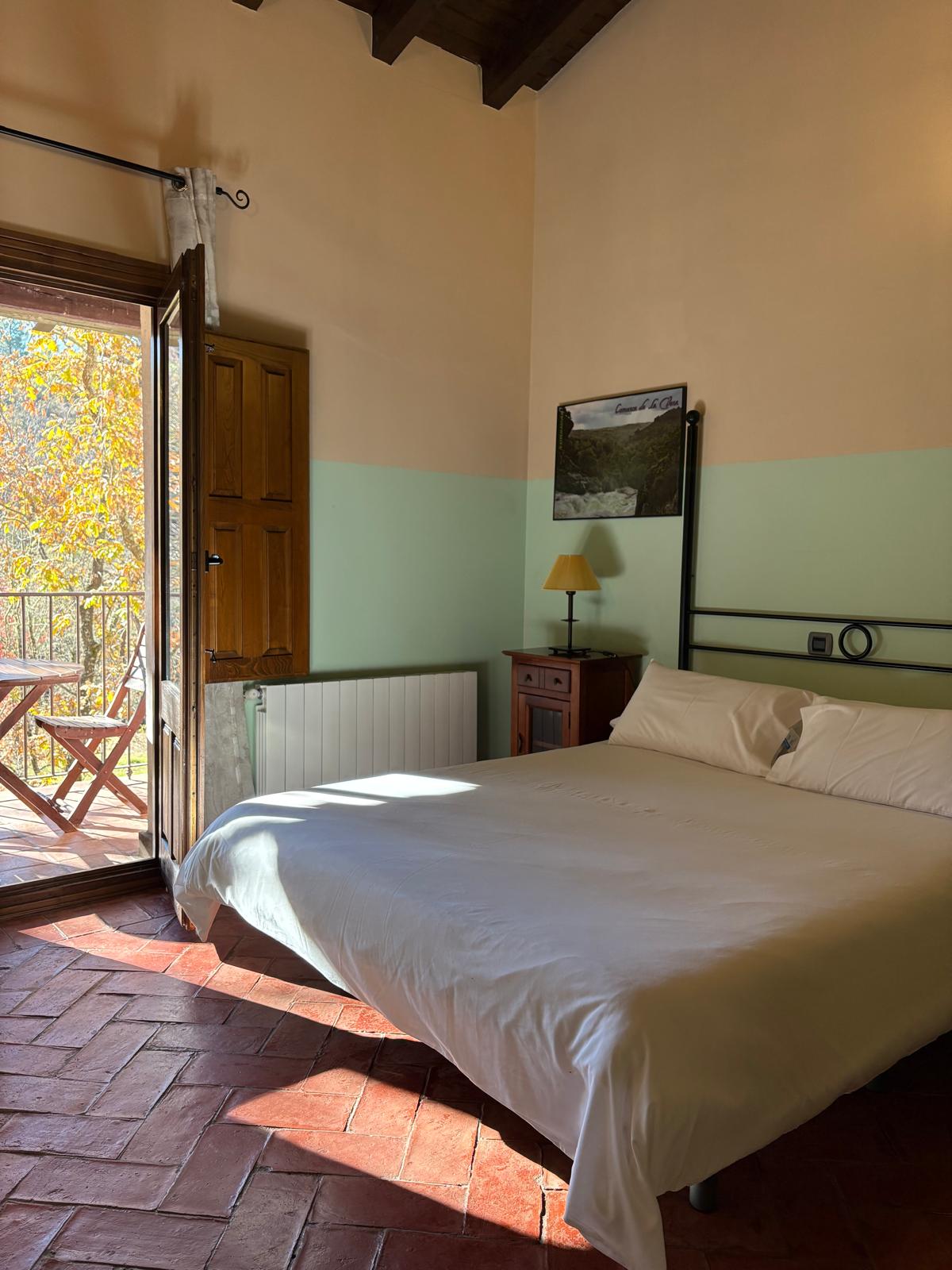 Salón con sofá cama doble-comedor -cocina Cuarto de baño Dormitorio con cama de matrimonio Los 2 Estudios poseen una capacidad máxima para 4 personas (utilizando el sofá cama doble) La temporada de acceso a las zonas compartidas, patio-jardín y sala de baños (obligatorio gorro de baño), es de 1º de Mayo al 12 de Octubre en horario de 09.30 a 14.00 h y de 16.30 a 20.30 h. Las barbacoas son de uso exclusivo para Casa Rural de 5 dormitorios y Casa Rural de 2 dormitorios.