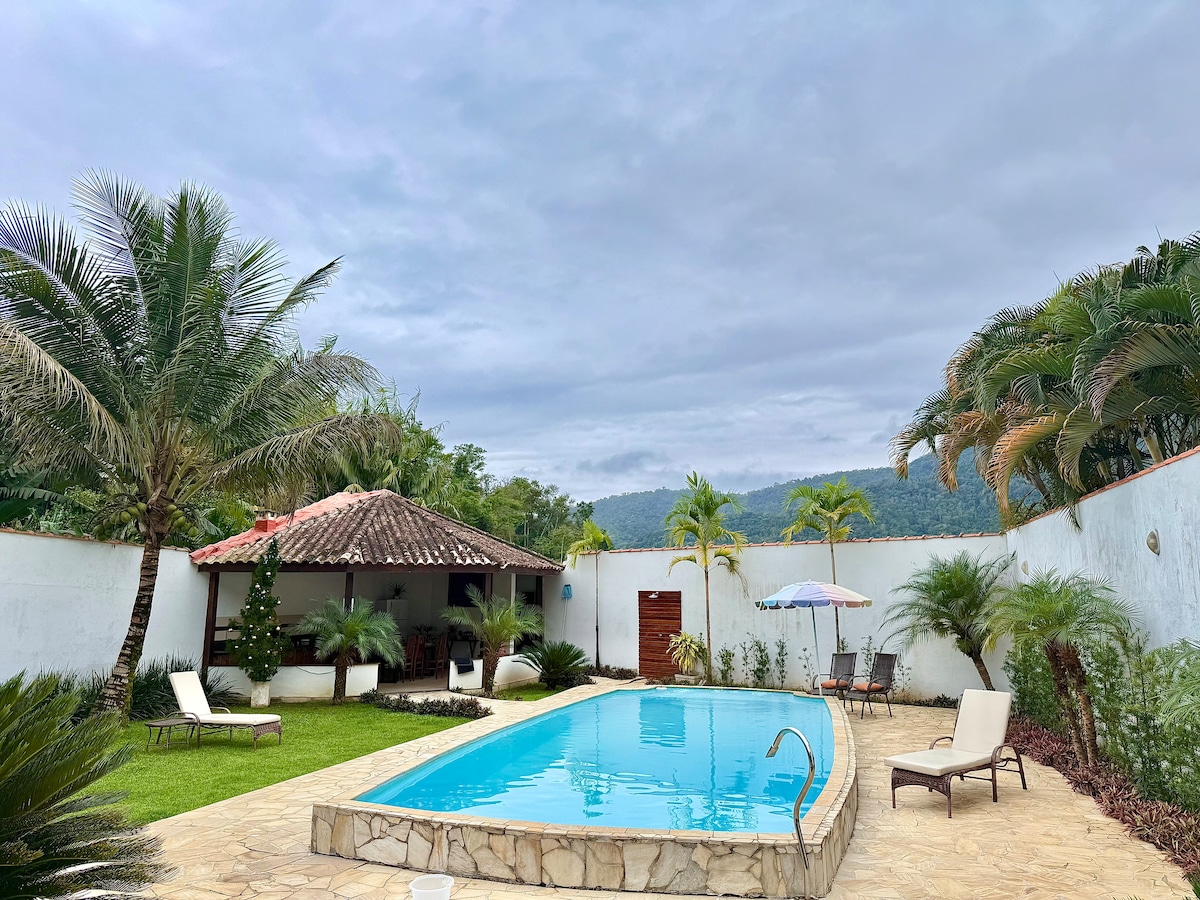 Casa arejada, quintal arborizado em meio a Mata Atlântica. Construção avarandada com vista para as montanhas e natureza. Um belo e amplo jardim com cerca. Ideal para receber seu pet que poderá brincar em segurança para que você não se preocupe em deixa-lo solto, perfeito para ficar sossegado.@Uma_Casinha fica situada aprox. 17 min do centro de Paraty e 2Km da via de acesso às famosas praias e cachoeiras de Trindade. Mercado e farmácia próximos. Delivery chega a porta. Há transporte público