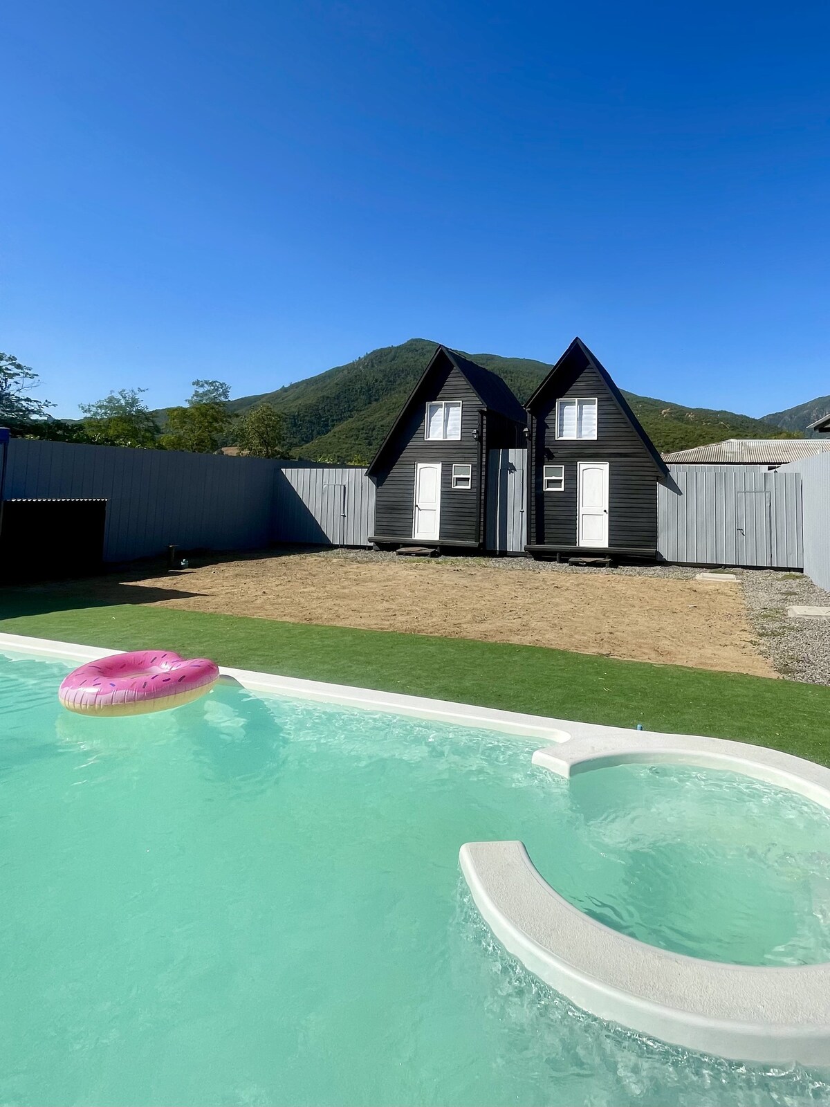 Contamos con dos cabañas boutique premium matrimoniales para dos personas completamente equipadas , sin cocina , aire acondicionado, caja de seguridad , frigobar , secador de pelo , televisión satelita 42'l HD , wifi , asesoria turísticas cerca de restoranes y viñas de la zona . Además de una gran piscina y un excelente vino de bienvenida. INCLUYE DESAYUNO , sin servicio de mucama