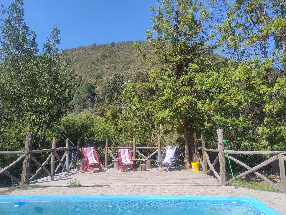 Cabaña a orillas del río Claro, ideal para pesca y relajo en plena cordillera de Colchagua , 2 habitaciones (1 matrimonial y 4 camas de plaza 1/2), wifi, TV cable, cocina equipada y terraza con vista a la piscina y montaña ,tiene al hot tub,asadera y fogón para disfrutar al aire libre.Ofrecemos excursiones y clases de pesca en nuestra Piscicultura La Polcura , donde puedes pescar tu propia trucha y luego prepararla a la parrilla en tu cabaña. Naturaleza, descanso y pesca en un solo lugar.