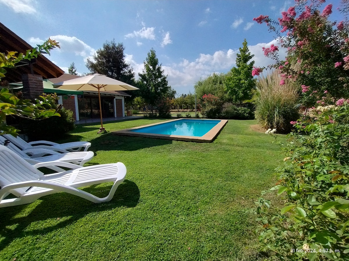 Casa amplia con una hermosa conexión con la naturaleza y tranquilidad del campo y lo que es mejor, cerca de todo. Tendrás las comodidades necesarias para disfrutar de un merecido descanso en familia y poder visitar el pintoresco pueblito de la punta de San Francisco de Mostazal. Es el lugar perfecto para escaparte de la rutina o el sofocante calor de la ciudad, para disfrutar de unos días de piscina y recreación. a 80km de Santiago, cerca de Picarquin, autodromo y casino Monticello.