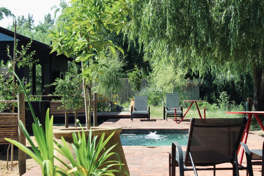Attention: Our pool is open for swimming but is still undergoing some maintenance around the terrace. Set on a luscious green piece of land we like to call Villachampa, our cozy modern rustic cabin invites you to escape the noise and pollution of Santiago in a peaceful rural setting just 45 minutes south of the city right off Ruta 5. You can also take the train from Estacion Central, in Alameda (Santiago) to Hospital station and we will pick you up from the station for free, no need to walk!