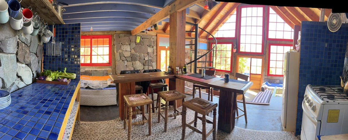 Relájate en esta escapada única y tranquila en la naturaleza de nuestro Refugio. cómoda cabaña de descanso o trabajo, equipada hasta para 4 personas ,con acceso a piscina , juegos infantiles, salón de trabajo y áreas verdes.