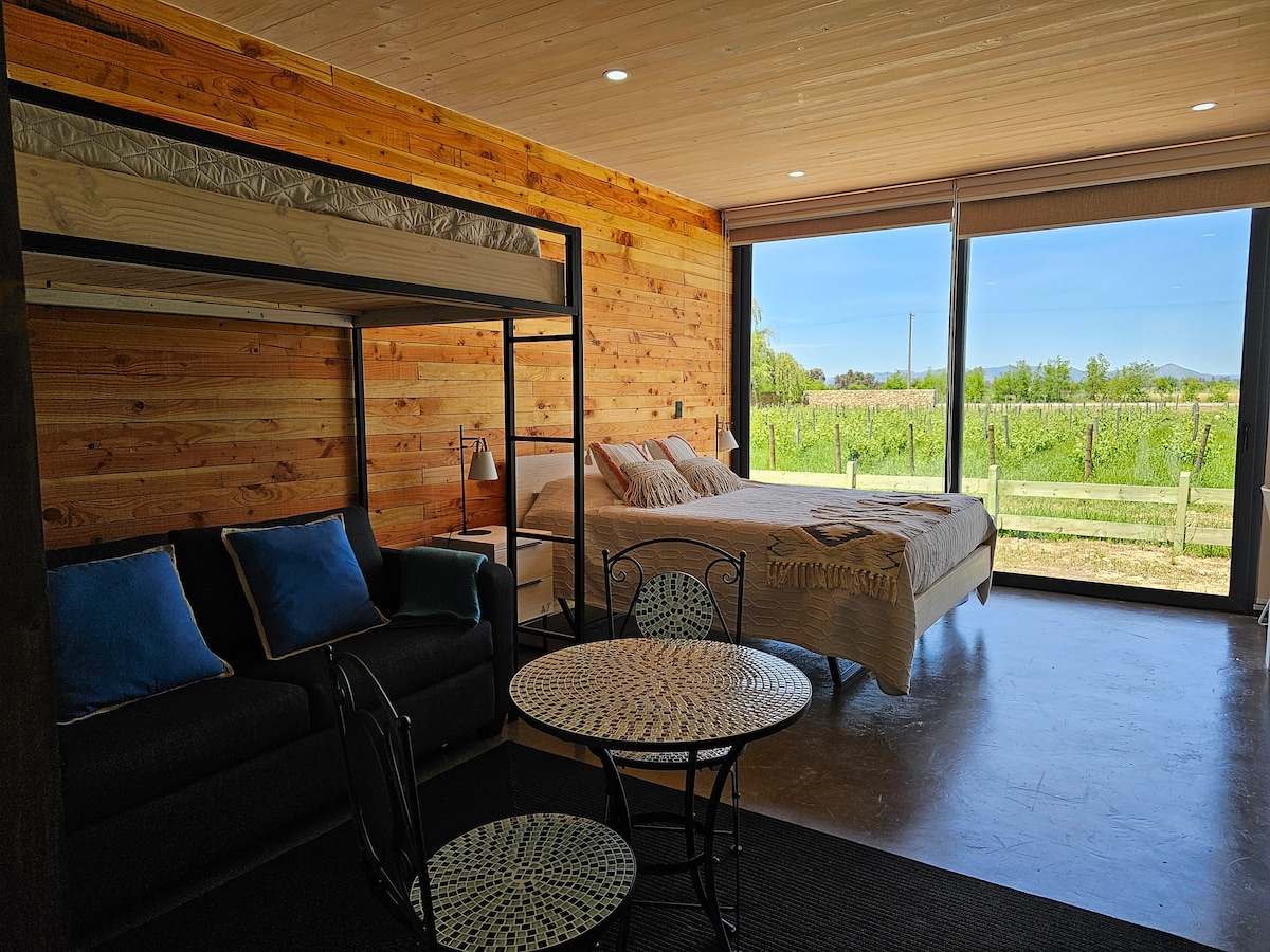 Duerme en un loft entre viñedos de cabernet sauvignon en el valle de Colchagua Disfrutarás de un desayuno incluido en la tarifa con productos del campo. Puedes hacer cabalgatas en pareja con un guía que te acompaña Tienes bicicletas para recorrer En el loft cuentas con leña para usar la bosca o un fogón exterior Disfruta un quincho privado que con parrilla a carbón y un gran mesón Disfruta con caballos, ovejas, gallinas Checkin 24 horas