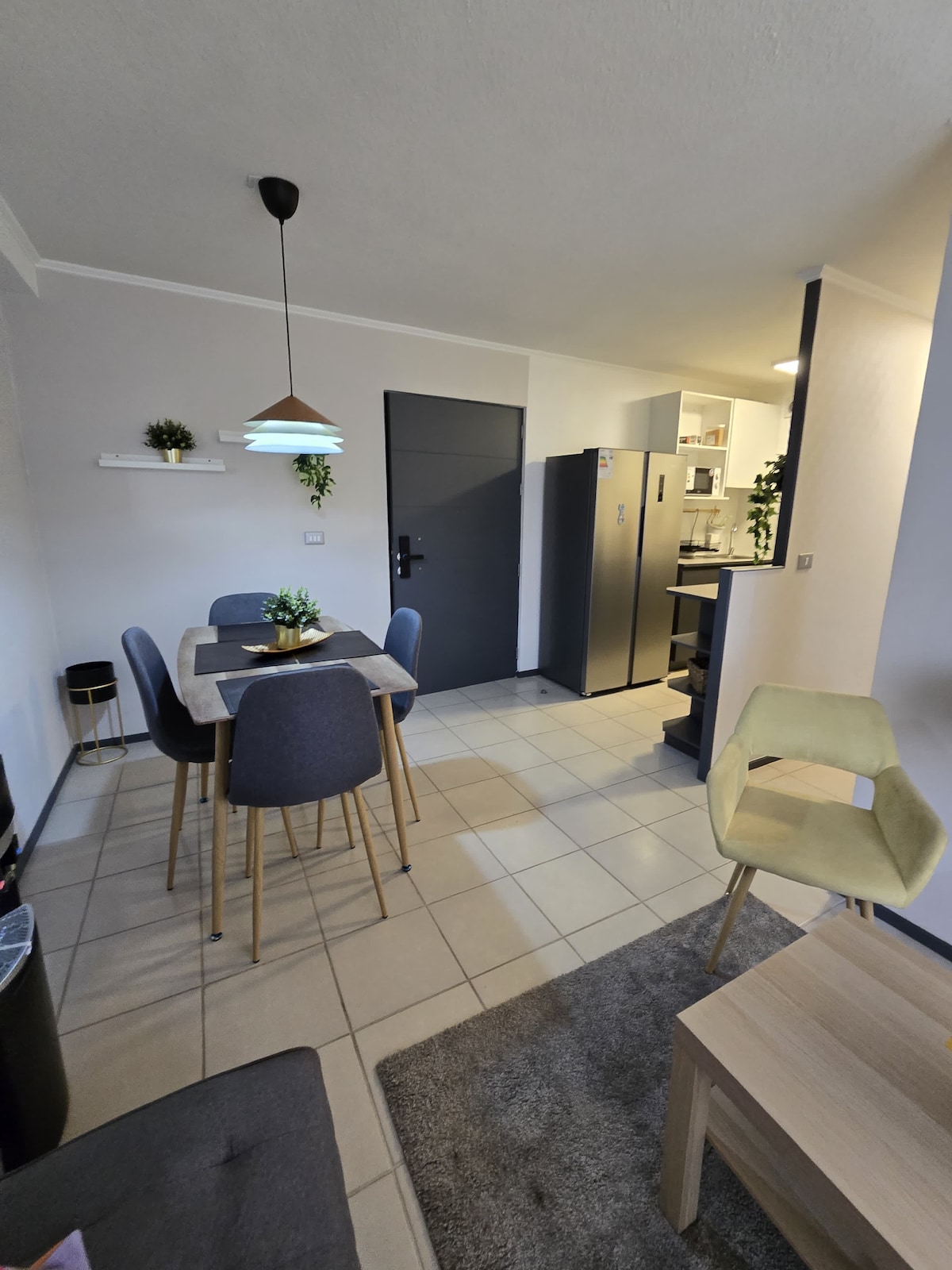 Cozy and bright apartment in downtown Rancagua, perfect for leisure or business trips. Located in a quiet, safe neighborhood near supermarkets, shops, and services. Enjoy a beautiful city view, modern décor, WiFi, Smart TV, equipped kitchen, comfy living room, and a restful bedroom. Private parking included. You’ll feel right at home!