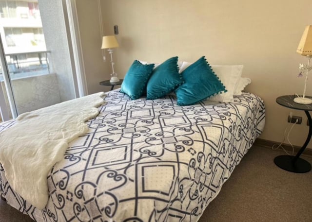 Disfruta de la sencillez de este alojamiento tranquilo y céntrico. A pasos de supermercados, restaurantes, excelente ubicación y locomoción a la puerta. Es condominio con vigilancia las 24hrs. Departamento con dos habitaciones y dos baños, habitación principal en suite, las camas son de 2 plazas. Living comedor, cocina full equipada con lavadora, secadora de ropa. Además de cocina, horno eléctrico y horno microondas, juego de ollas, servicio para 4 personas. Además consta de una amplia terraza.