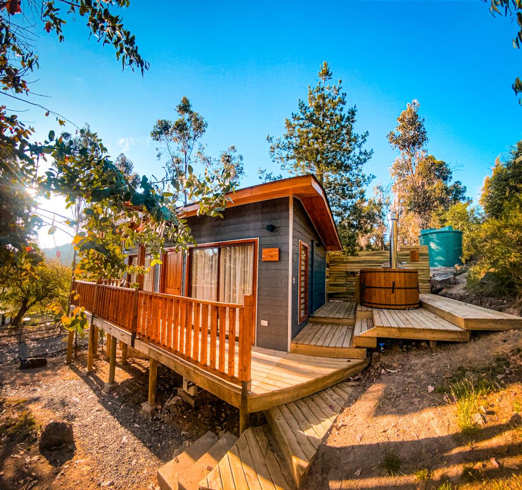 Descubre nuestra cabaña en medio de las viñas, un refugio encantador para aquellos que buscan paz y tranquilidad en la naturaleza. Con decoración moderna y comodidades lujosas, disfrutarás de una experiencia única. Cada Tiny House ofrece una habitación elegante, baño moderno, cocina sustentable y sala de estar con aire acondicionado. Disfruta de la terraza con impresionantes vistas estelares. Aceptamos mascotas y contamos con sauna y hot tub al aire libre para tu relajación y rejuvenecimiento.