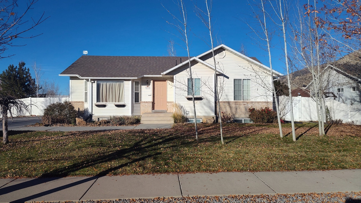 Experience a peaceful getaway with friends & family at this cheerful home within walking distance to USU & minutes away from all the adventures Logan Canyon has to offer! Embrace relaxation & excitement all in one place! Ensuring you have the most comfortable stay, we provide the softest of bedding & linens & this newly remodeled home is set up with central heat & A/C. Enjoy our full kitchen & cute coffee bar. Relax with movie nights in our living room on a comfy couch that fits 8 people!