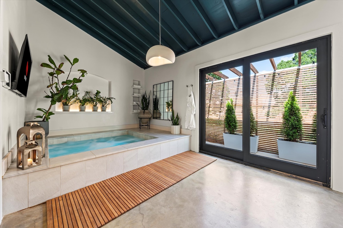 Nestled amongst The Wichita Wildlife Refuge and Downtown Medicine Park, this BRAND NEW tranquil retreat features a Private Indoor Hot tub/Pool, Private Sauna, Gym, 2 Bedrooms both with King Beds, 2 full Bathrooms with showers and a mountain view balcony . Need more a space? Accommodate 8 by booking Soak Haus Align on the same property. 5 Min Walk to Downtown Medicine Park 6 Min Drive to Lake Lawtonka 6 Min Drive to Wichita Mountains 15 Min Drive to Fort Sill 20 Min Drive to Lawton