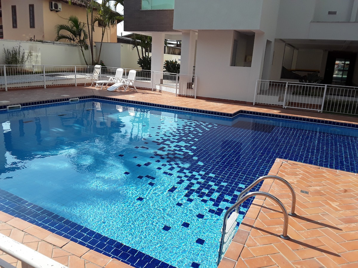 Apartamento muito confortável mobiliado completo, de 1 quarto com ar condicionado split, com cozinha, sala com sacada e churrasqueira, banheiro e área de serviço; Prédio com elevador, garagem e vagas para visitantes; Condomínio com piscina, a 150 metros da praia. Excelente localização na região mais central da Praia da Cachoeira do Bom Jesus, a poucos metros do restaurante Bokas; fácil acesso a outras praias da região, bom comércio, farmácia, supermercados, restaurantes, e outras diversões.