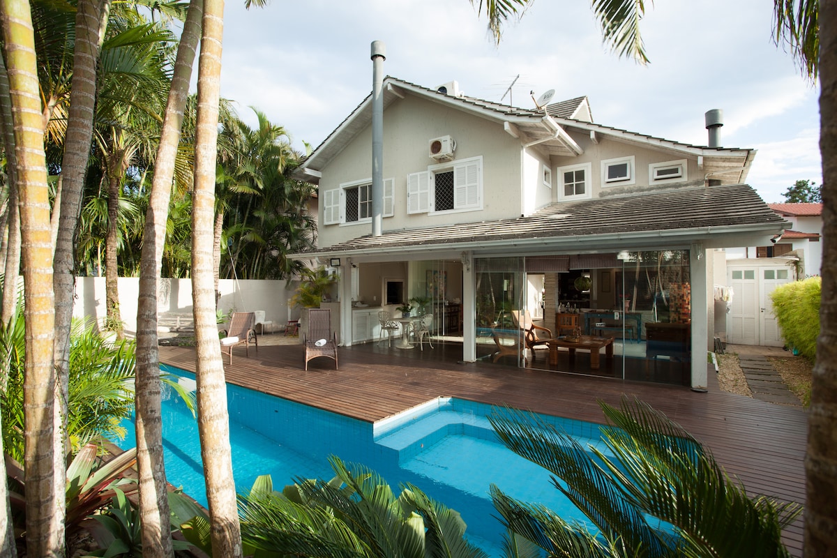 Excelente casa com acesso direto para praia! São 4 dormitórios, sendo 3 suítes, varanda e churrasqueira interligados ao jardim e a piscina. Localizada num condomínio com apenas 3 residências,em uma rua tranquila, com fácil acesso as melhores praias do Norte da Ilha! A cinco minutos de Jurerê. Condomínio exclusivo com caseiro. A piscina e amplo gramado, são compartilhados apenas pelas três residências. Aconchegante,com referenciais mediterrâneos, aqui você pode relaxar com pé na areia!