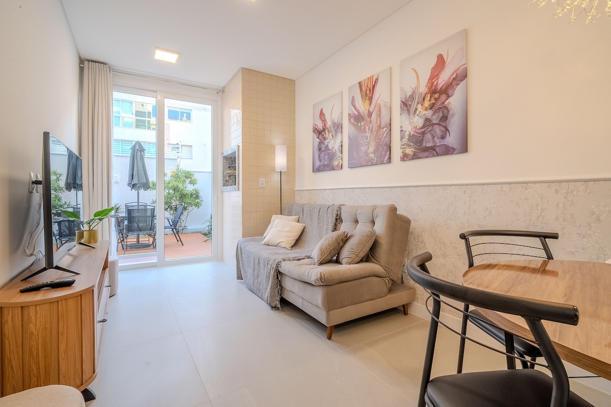 Incrível apartamento “pé na areia”, localizado a 40 m da praia dos Ingleses. Completo, aconchegante e funcional. Possui sacada com churrasqueira privativa, TV e ar-condicionado quente e frio no quarto e na sala. Decorado com bom gosto para você se sentir em casa. A janela do quarto possui persiana elétrica em PVC, com isolamento térmico-acústico. Possui 350 MB de internet exclusivos. Condomínio com elevador, entrada acessível, sala de jogos, piscina adulto e infantil e estacionamento gratuito.