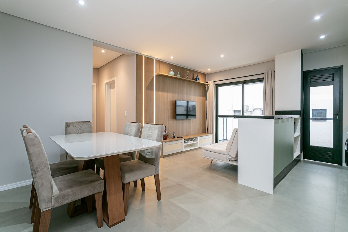 Apartamento moderno, amplo e próximo à praia. °2 quartos com ar condicionado °Varanda com churrasqueira °Cozinha completa °Tv 55' Samsung °Wi-Fi rápido °Vaga de garagem coberta Condominio - Área Comum °Piscinas °Salão de jogos °Brinquedoteca °área pet Comodidades adicionais Fornecemos -Toalha de banho -Toalha de rosto -Lençol de elástico -Cobertores Regras importantes °Respeitar regras do condomínio/vizinhança
