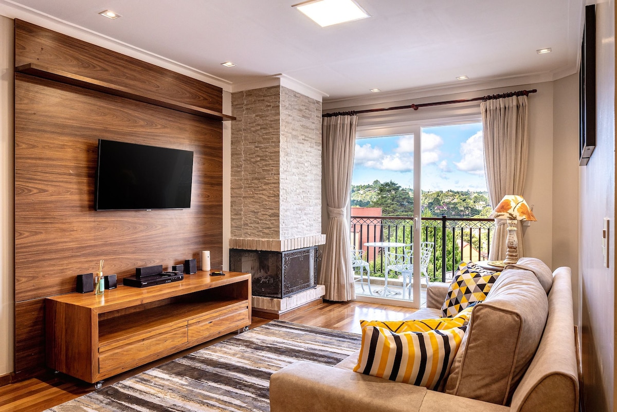 Você em Campos do Jordão num apartamento confortável e totalmente equipado para transformar os seus dias de hospedagem numa experiência inesquecível e ainda com a vista da cidade, uma agradável sacada e a lareira, que é um charme à parte e fará os seus momentos ainda mais especiais. Assim é esse lindo apartamento que te convida a vivenciar, com a família ou amigos, toda a experiência que Campos do Jordão promete. E, para compor ainda mais a sua praticidade, com supermercado logo à frente.