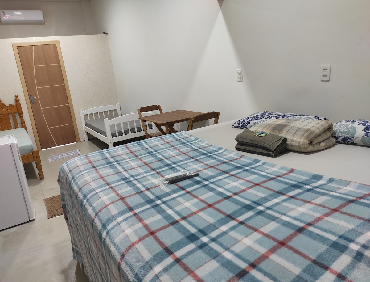 Abrace a simplicidade neste lugar tranquilo e bem-localizado. Apartamento contendo uma suite com cama de casal e um quarto com bicama de solteiro. Tendo a possibilidade de adicionar colchão extra.