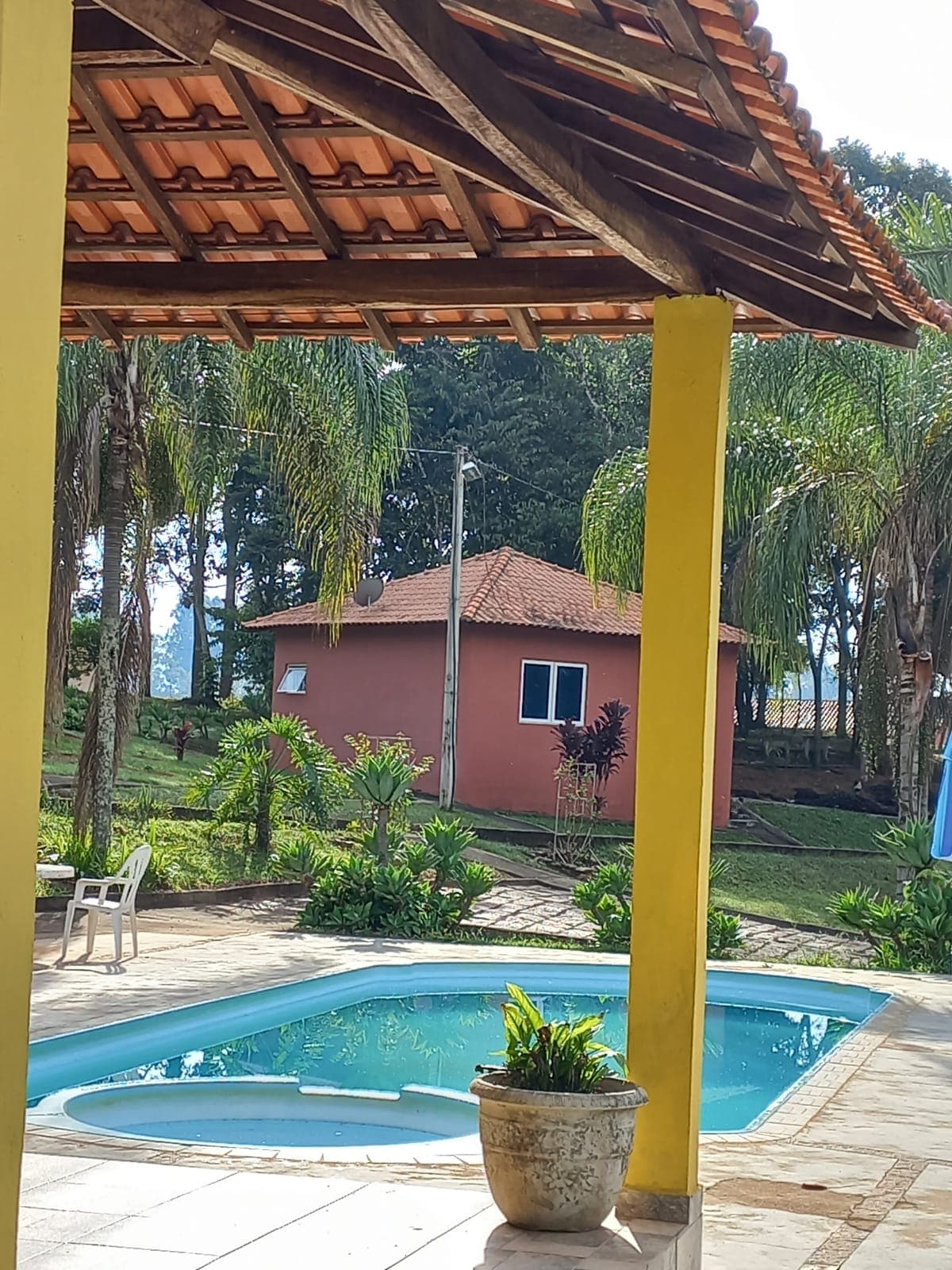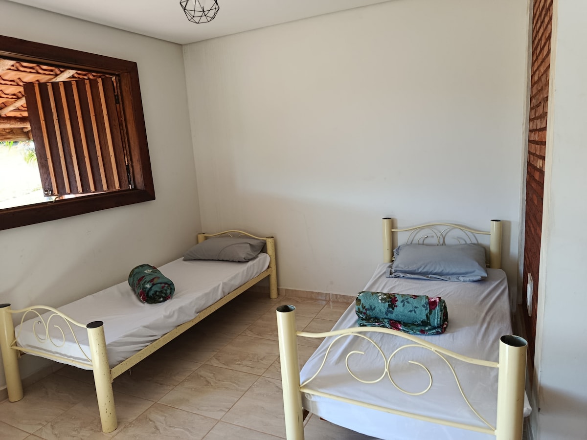 Ambiente rústico, aconchegante. Casa na roça, com 1 suíte + 2 quartos, sala de estar, jantar, com acabamentos rústicos e despojados. O verde e uma bela paisagem circundam a casa e dão o sossego necessário para um bom descanso, e por que não, algumas caminhadas. A propriedade fica a 2 km de Palmeiral (distrito de Botelhos), e é possível chegar a Palmeiral por estrada estadual asfaltada de alta qualidade. As paisagens valem os 20 km de Poços (Estr. dos Pessegueiros), ou mesmo os 15 km de Botelhos.