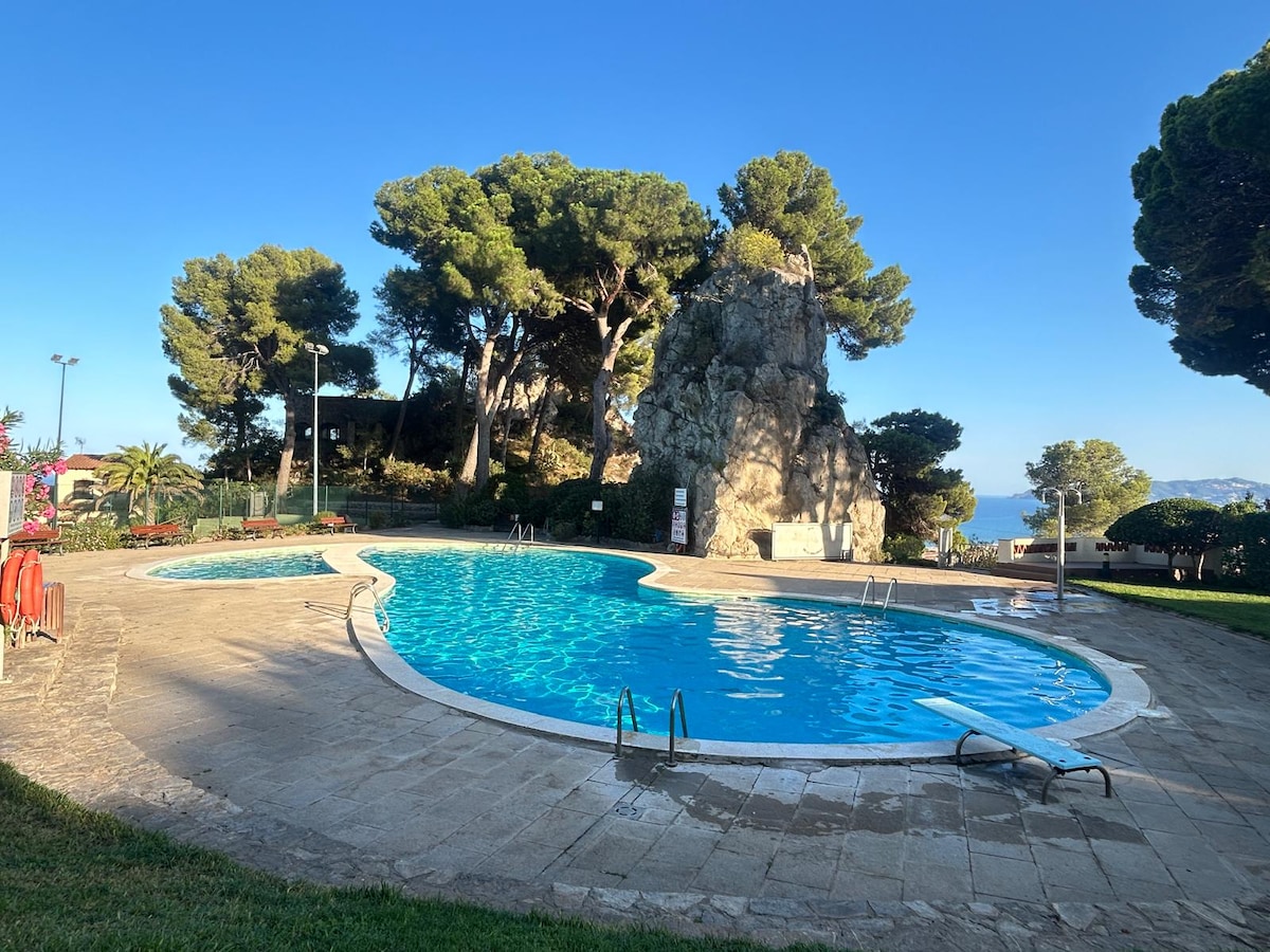 The house is located in the private gated estate of the Troc Pinell. It has two completely independent residential units which can be rented separately or together (for up to 8): a dwelling with terrace at the lower level (fully renovated in 2016), and a dwelling with balcony above (new equipment & furniture). This listing is for the unit at the lower level. One enters the unit by the terrace.