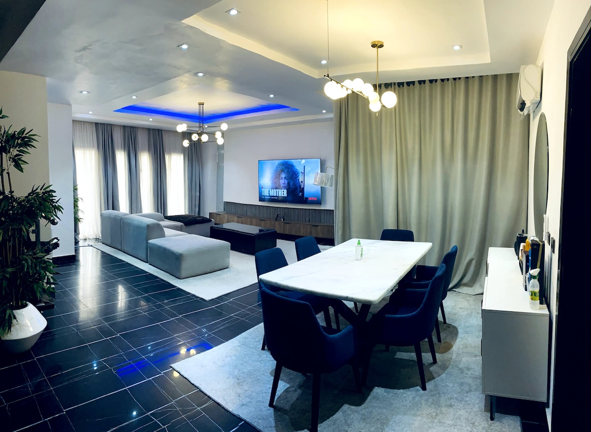 Welcome to Meka Homes—an elegant, smart apartment designed for comfort, privacy, and ease. Perfect for short and long stays, this home is located in a secure, gated estate with a private compound. It features king-sized beds in all ensuite rooms, smart TVs with streaming services, unlimited high-speed internet, backup power, and a well-equipped kitchen. Enjoy a peaceful environment with easy access to nearby grocery stores, pharmacies, and eateries.