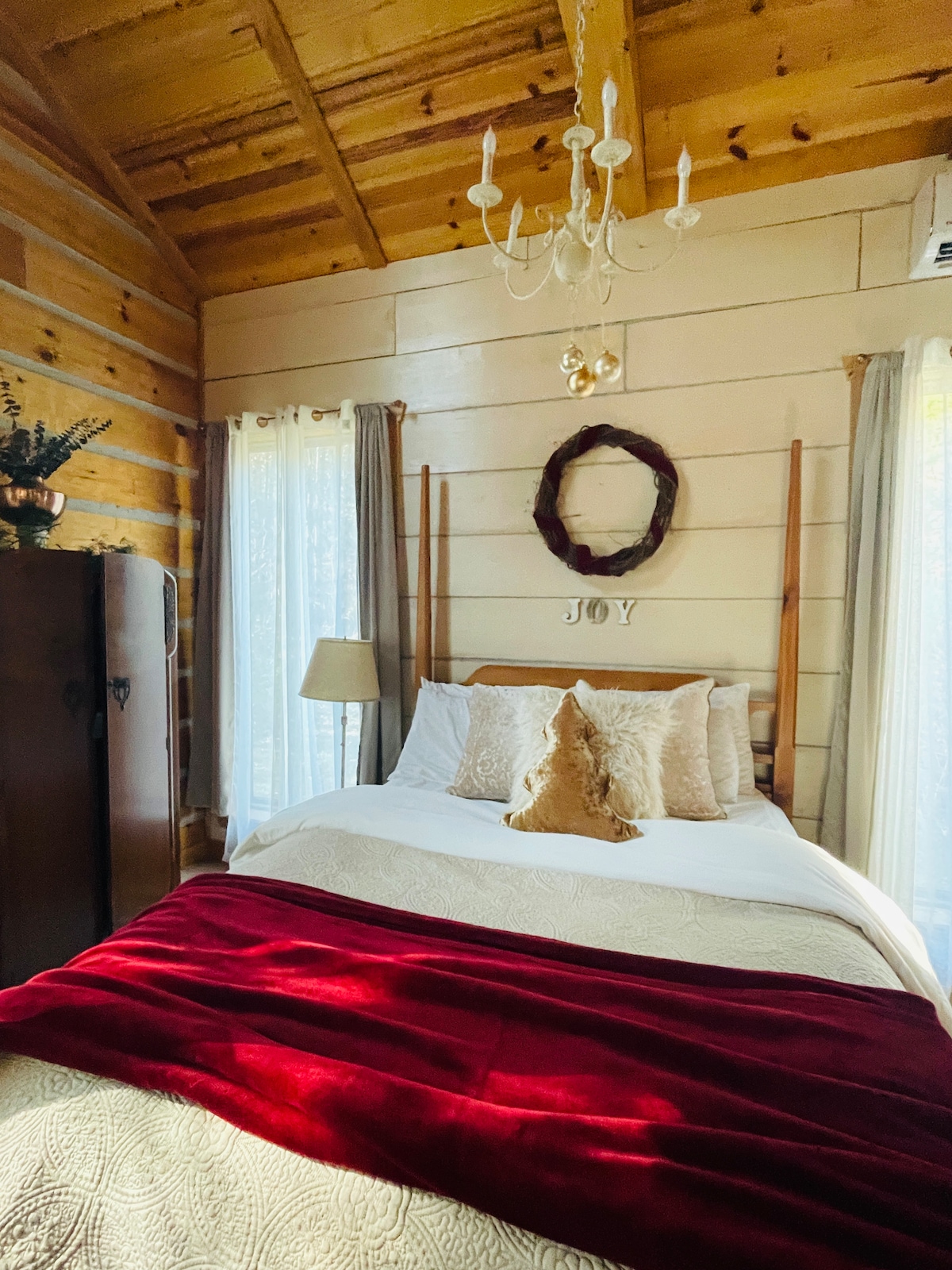 Can you say RESTFUL RETREAT?! Nestled on 20+ acres, the cabin is a beautiful place to rejuvenate. The open concept interior is all wood, many planks were hand-crafted for “old world” feel. Kitchenette, desk, loft, and porch. Just three-minute walk from gardens, infrared sauna, soaking tubs, and outdoor showers. A peaceful space to rest, refocus, and refuel. Guest say that our queen-size bed is the most comfortable ever! Conveniently located 1 mile from Interstate 20, 5-10 min town center.