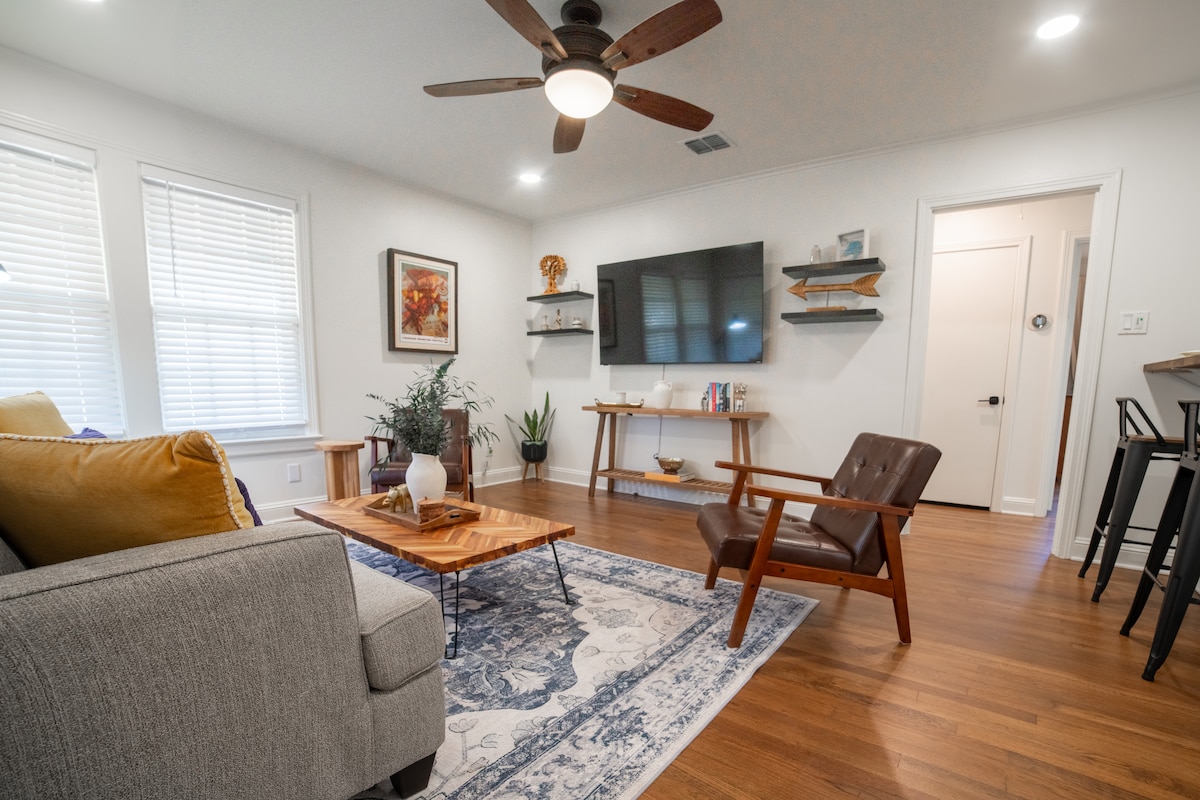 Enjoy a relaxing stay at this newly renovated centrally-located cottage. Tucked away on a quiet street in Shreveport's Historic Broadmoor Neighborhood you'll find comfortable living space, fully equipped kitchen, 2 bedrooms/1 full bath with a queen size bed in each with thoughtful touches throughout. Close proximity to many local eats, shopping, and grocery. Approximately 10 minutes or less from convention center/downtown, riverfront casinos, major hospitals, and BAFB. STR Permit 26-0075-STR