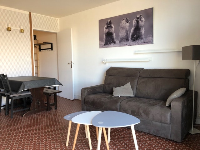 Studio cabine 20m², en angle, aucun vis à vis et superbe vue sur la vallée. Balcon 4.5m² Résidence le Grand Stemm. Idéal couple ou couple + 1 enfant Logement entièrement refait à neuf. Entrée avec Coin cabine, 2 lits superposés. Salon avec placard, buffet, tv, canapé lit avec vrai matelas en 160! Table hautes et 4 tabourets Dans le logement, tout pour manger et faire la cuisine, tout est neuf, moderne, appareil à raclette présent! Senseo. Draps et alaise à prévoir obligatoirement! Merci