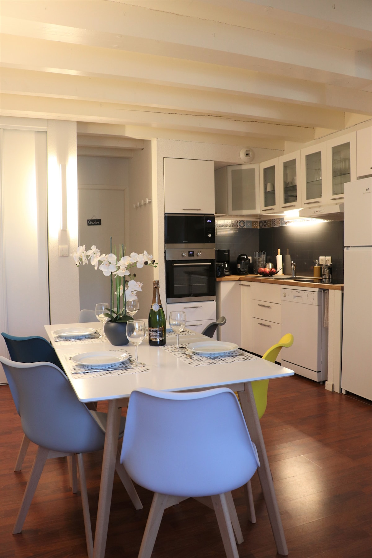 Bel appartement ancien , quartier calme à 100m du centre ville et des commodités. vue plein sud face aux montagnes au travers d'une grande baie vitrée suivie d'un balcon. L'appartement est très fonctionnel et équipé comme une résidence principale. WC et salle de bain sont séparés , tout comme les deux chambres qui conservent leur intimité. La douche est très spacieuse et fonctionnelle pour doucher les jeunes enfants. Bibliothèque de plus de 200 ouvrages. wifi fibre. Possibilités de ménage