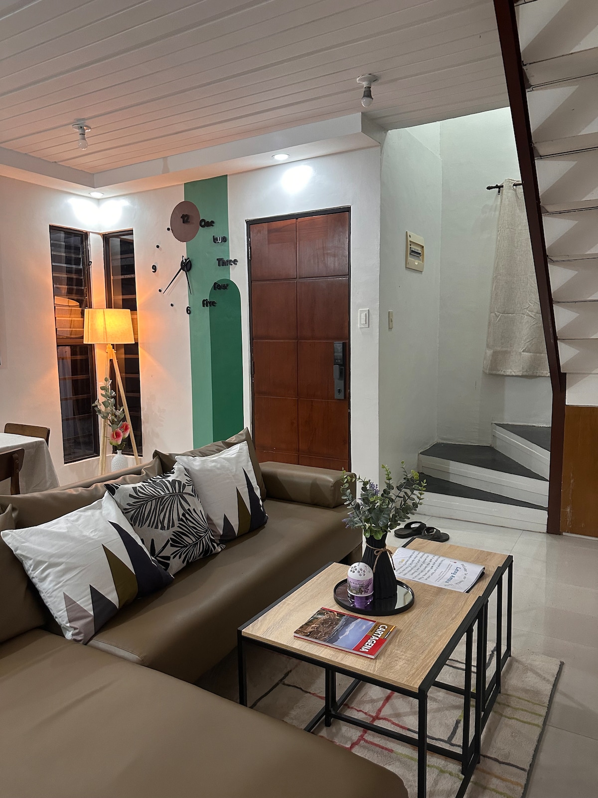 Welcome to this spacious and comfortable Airbnb home located near Bacolod's renowned Kyle's Eatery. With its high ceiling and cozy ambiance, this place offers plenty of extra room for a truly relaxing stay. Perfect for business travelers or families, this intimate accommodation features a staircase design, on a double height space complemented high window that fills the airy space with natural light. The classic furniture with accent mosaic wall adds a touch of elegance to the ambiance.