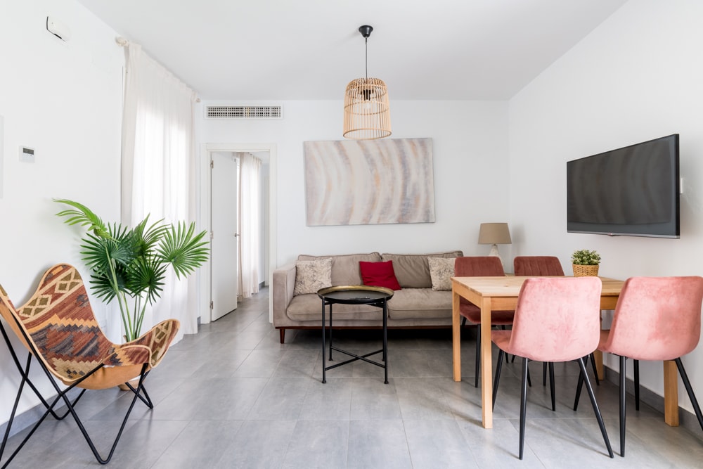 Charming and luminous apartment located in a light-filled palace house, 1 minute from the Pl.del Cabildo. The interior of the space has a living room with a double sofa bed, a bedroom with a double bed, an equipped kitchen and a bathroom. The building is newly renovated, mixing Andalusian style with modernity and elegance. The apartment is designed for families or friends. If what you want is quality and comfort, this accommodation is your best option. We are looking forward to meeting you