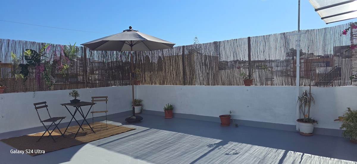 Pequeño y coqueto estudio con terraza. Se encuentra en el interior de la planta baja de un ático dúplex y se accede desde el interior de la vivienda, pasando por un pasillo compartido. Tiene su entrada con llave, su baño y cocina en el interior y WIFI. Cuenta con un trastero a pie de calle para material deportivo a 2 minutos de casa gratis ! Localización excelente en el centro del pueblo a solo 2 minutos de la playa y del casco antiguo, zona tranquila. Vistas lateral al mar y Marruecos.