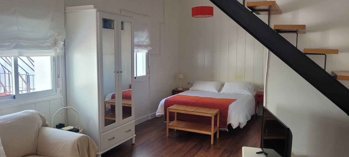 Apartamento para adultos y niños mayores de 10 años. No fumadores. Aparcamiento incluido en el precio de la reserva. El Loft se ubica en una bodega jerezana rehabilitada del siglo XVIII. Es un espacio diáfano bellamente decorado y completamente equipado. Está situado en primera planta con ascesor y cuenta con una terraza amueblada de 20 m2 bajo los soportales del patio en planta baja. Es un lugar muy tranquilo para desconectar y disfrutar de la paz y el silencio en un edificio histórico.