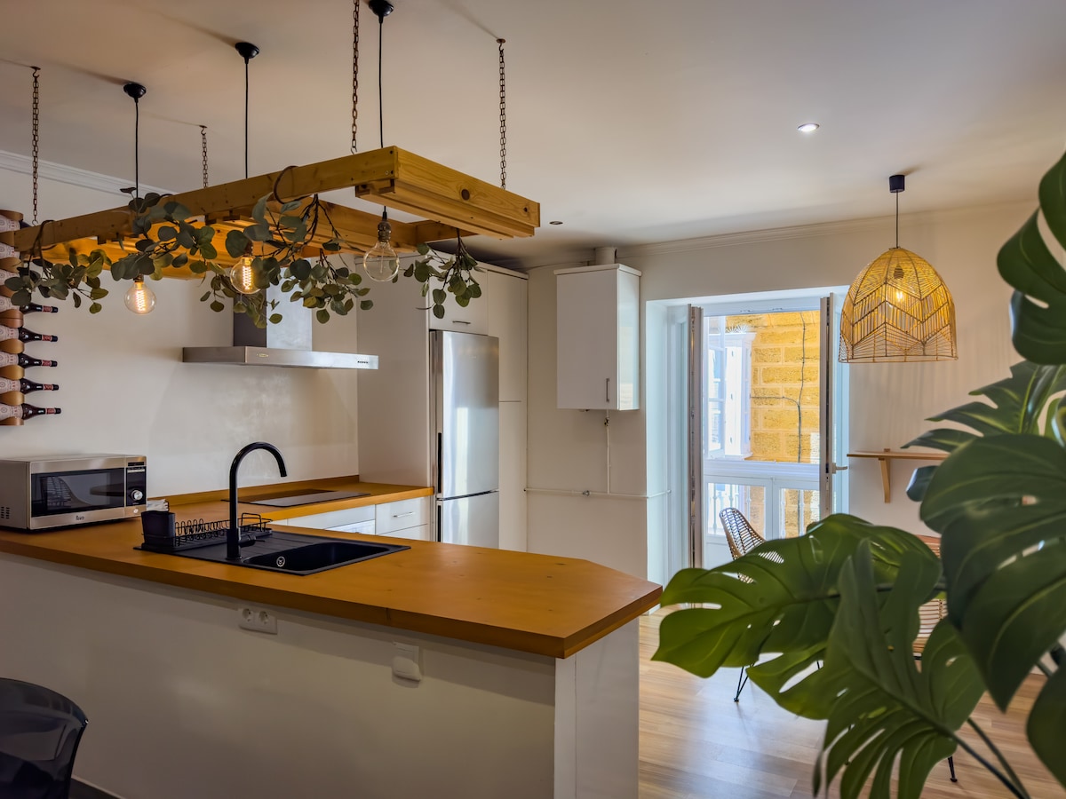 Disfruta de este precioso apartamento en el corazón del barrio del Pópulo, situado a solo 50 metros de la Catedral. Se encuentra en un edificio del siglo XVIII, recientemente rehabilitado con grandes patios que lo bañan de luz. La vivienda tiene un pequeño patio de uso exclusivo donde podrás disfrutar de un desayuno al aire libre. El bullicio del barrio queda totalmente apagado en este tranquilo apartamento y alejado de los ruidos exteriores.