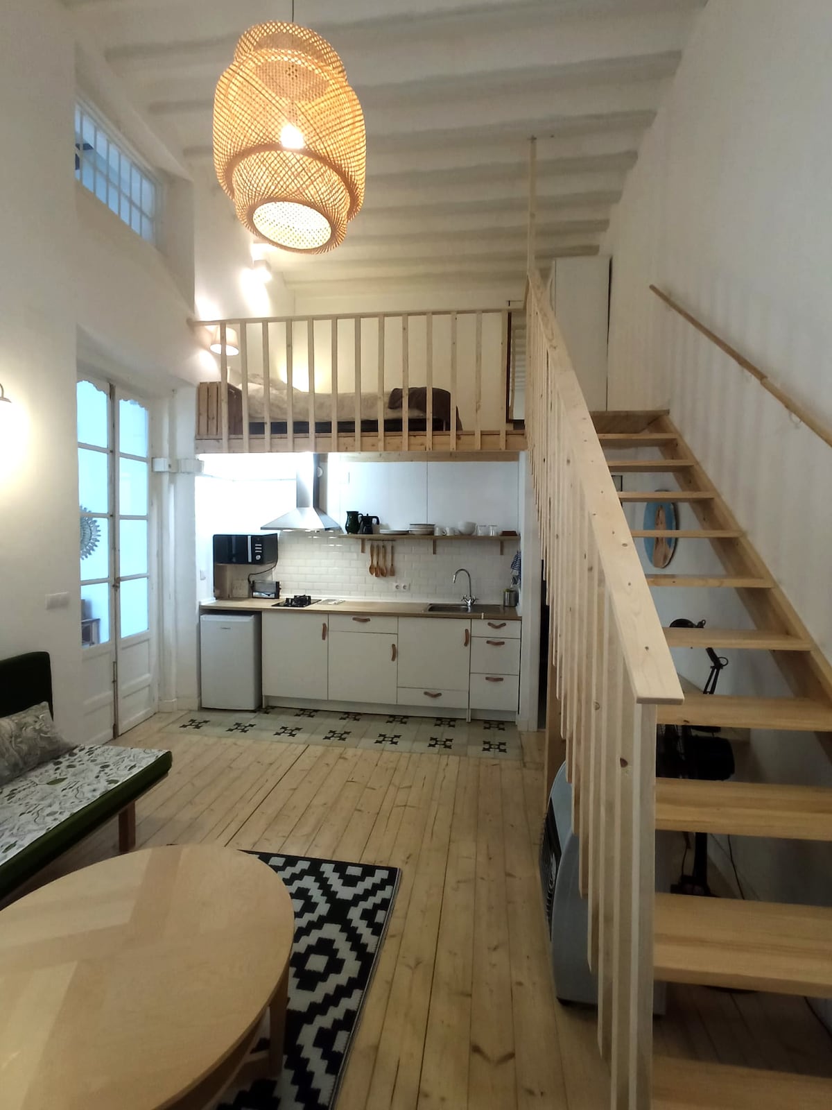 It is a separate space, a loft, private with key, in a historic old building, completely renovated. Exceptional location and lots of charm, the decor is Nordic style with fir wood floors, give warmth, comfort and create a cozy atmosphere, is the second floor, with ceilings of 5 meters high which is where the loft is located. I live on the same floor and share door to the floor but the loft is a space, independent and private key exclusively for guest use.