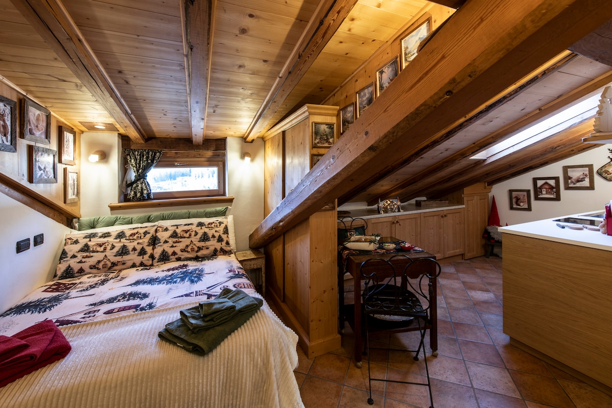 Monolocale indipendente per 2 persone,situato al piano terra.A pochi passi il centro con il bar-tabacchi-edicola,il minimarket e la pizzeria.Caminetto, sauna e vasca idromassaggio privati all'interno della casa. Cucina attrezzata con tutto il pentolame necessario,microonde e frigorifero con congelatore.L'appartamento fornisce: lenzuola, asciugamani, accappatoi, saponi, phon, carta igienica, spugne e detersivo per i piatti.