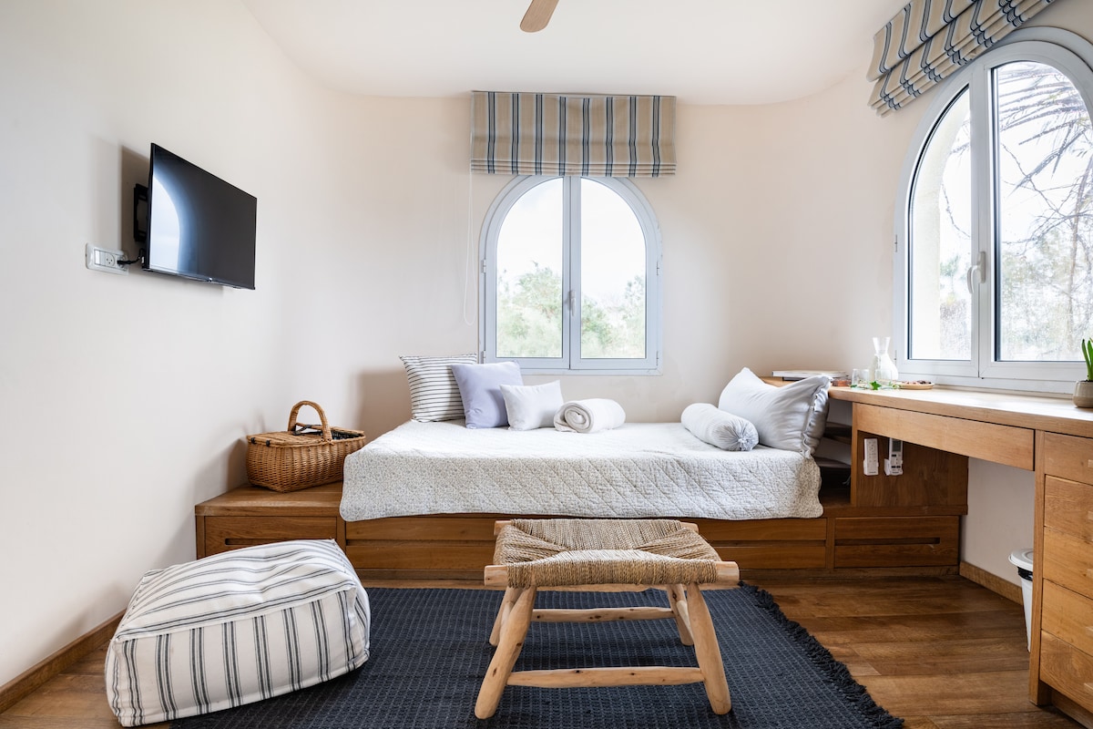 A beautiful and spacious loft with an amazing view of a natural grove. A sense of life within nature in complete privacy. Located in the Jezreel Valley in the Lower Galilee. The loft is well equipped and comfortable for a long stay. There are a number of charming seating areas in the garden and on the terrace. Close to beautiful hiking and bicycle trails. A great place for artists and writers.